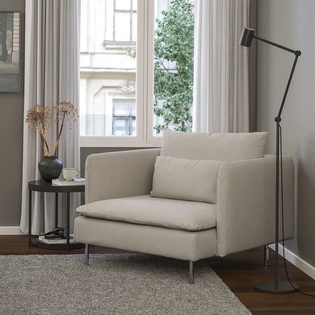Мягкая мебель серии СОДЕРХЭМН с комфортным низким и глубоким сиденьем и незакрепленными подушками спинки для оптимальной поддержки.