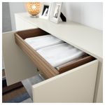 Дверцы открываются легким нажатием. Благодаря нажимному механизму вам не придется устанавливать ручки. 2 ящика и съемная полка из массива дерева и шпона. Регулируемые ножки обеспечат устойчивость даже на неровном полу.