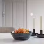 «В работе над серией НЭТБАРБ меня вдохновляло то, как расплавленное стекло падает и растекается по форме в процессе производства. Узор напоминает круги на поверхности воды от падающей капли. Помимо создания красивой и выразительной поверхности, мы также обнаружили, что плавные круги — это эффективный для производства способ создания рисунка. Результат — элегантные и прочные предметы сервировки. Надеюсь, со мной многие согласятся».