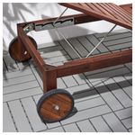 Спинку можно установить в одном из пяти положений. Легко передвигать благодаря колесикам. Сделайте шезлонг максимально комфортным, дополнив его понравившейся подушкой или подстилкой. Мебель обработана полупрозрачной морилкой в несколько слоев.