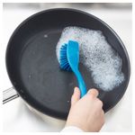 Скребок на обратной стороне щетки позволяет легко удалять остатки пищи. Щетку удобно вешать. Длина: 25 см. Ручка: Полипропилен. Щетинки: Полиэстер. Материал, из которого изготовлено данное изделие, подвергается переработке.