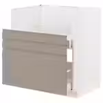 Дополните ее матовыми фасадами УППЛЁВ серо-бежевого цвета со встроенными ручками и скошенными краями, и получится строго очерченный дизайн в современном стиле.