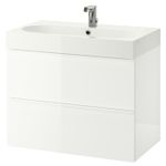 Шкаф для раковины с 2 ящ, глянцевый белый/БРОГРУНД смеситель 80x48x68 см IKEA GODMORGON ГОДМОРГОН / BRÅVIKEN БРОВИКЕН