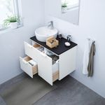 Современный стиль мебели для ванной ЭНГШЁН подчеркивается интегрированными ручками и лаконичным дизайном.