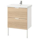 Серия ЭНХЕТ позволяет с легкостью создавать комбинации мебели, чтобы начать в ванной новую жизнь. В этом напольном шкафу под раковину есть 2 ящика для всего необходимого, а фасады с отделкой под дуб сделают интерьер выразительнее.