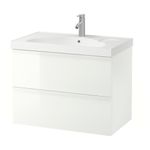 Шкаф для раковины с 2 ящиками, глянцевый белый (80x49x64 см)