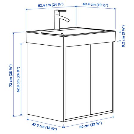 Современный стиль мебели для ванной ЭНГШЁН подчеркивается интегрированными ручками и лаконичным дизайном.