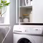 Простое решение, чтобы превратить неиспользуемое пространство над стиральной машиной в практичное место для хранения.