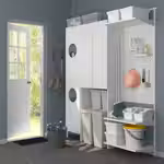 Система хранения ЙОСТЕЙН не боится повышенной влажности, так что ее смело можно ставить в ванную или прачечную или использовать на открытом воздухе, например, на балконе.