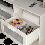 Храните игры, пульты дистанционного управления и другие аксессуары в больших ящиках, а все провода пропустите через специальные отверстия в задней стенке.