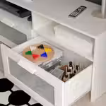 Фронтальная панель ящика: Закаленное стекло, ДСП, ДВП, Бумажная пленка, Пластиковая окантовка