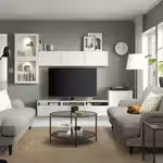 Тумба для телевизора БЕСТО может использоваться для телевизора и всех необходимых гаджетов.