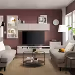 Настенные шкафчики позволяют эффективно использовать пространство над телевизором.