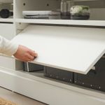 Сочетание открытых и закрытых отделений позволяет организовать удобное хранение пультов и других аксессуаров для телевизора.