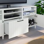 Тумба подойдет для телевизора и любимых вещей, которые вы хотите продемонстрировать за стеклянными дверцами.Благодаря нескольким отверстиям на задней панели тумбы под ТВ провода от телевизора и других устройств всегда будут под рукой, но не на виду.