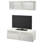 Шкаф для ТВ, комбинированный, стекляные дверцы БЕСТО, белый Лаппвикен, светло-серый прозрачное стекло (120x20/40x166 см)