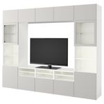 Шкаф для ТВ, комбинированный, стекляные дверцы БЕСТО, белый, Лаппвикен светло-серый прозрачное стекло (300x40x230 см)