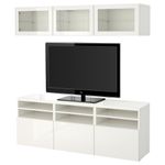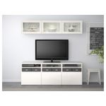 Шкаф для ТВ, комбинированный, стекляные дверцы БЕСТО, белый, Сельсвикен глянцевый/белый прозрачное стекло (180x40x192 см)