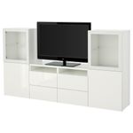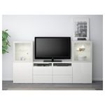 Шкаф для ТВ, комбинированный, стекляные дверцы БЕСТО, белый, Сельсвикен глянцевый/белый прозрачное стекло (240x40x128 см)