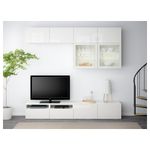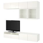 Шкаф для ТВ, комбинированный, стекляные дверцы БЕСТО, белый, Сельсвикен глянцевый/белый прозрачное стекло (240x40x230 см)