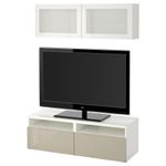 Шкаф для ТВ, комбинированный, стекляные дверцы БЕСТО, белый, Сельсвикен глянцевый/бежевый матовое стекло (120x20/40x166 см)