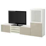 Шкаф для ТВ, комбинированный, стекляные дверцы БЕСТО, белый, Сельсвикен глянцевый/бежевый матовое стекло (240x40x128 см)