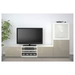 Шкаф для ТВ, комбинированный, стекляные дверцы БЕСТО, белый, Сельсвикен глянцевый/бежевый матовое стекло (240x40x128 см)