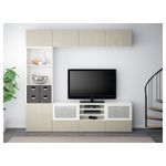 Шкаф для ТВ, комбинированный, стекляные дверцы БЕСТО, белый, Сельсвикен глянцевый/бежевый матовое стекло (240x40x230 см)