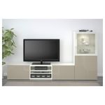 Шкаф для ТВ, комбинированный, стекляные дверцы БЕСТО, белый, Сельсвикен глянцевый/бежевый прозрачное стекло (240x40x128 см)