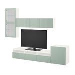 Шкаф для ТВ, комбинированный, стекляные дверцы БЕСТО, белый Сельсвикен, глянцевый/серо-зеленый светлый прозрачное стекло