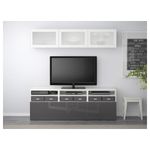 Шкаф для ТВ, комбинированный, стекляные дверцы БЕСТО, белый, Сельсвикен глянцевый/серый матовое стекло (180x40x192 см)
