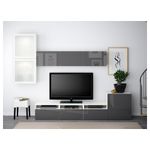 Шкаф для ТВ, комбинированный, стекляные дверцы БЕСТО, белый, Сельсвикен глянцевый/серый матовое стекло (300x20/40x211 см)