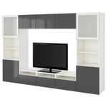 Шкаф для ТВ, комбинированный, стекляные дверцы БЕСТО, белый, Сельсвикен глянцевый/серый матовое стекло (300x40x192 см)