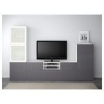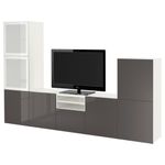 Шкаф для ТВ, комбинированный, стекляные дверцы БЕСТО, белый, Сельсвикен глянцевый/серый матовое стекло (300x40x192 см)