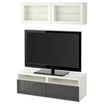 Шкаф для ТВ, комбинированный, стекляные дверцы БЕСТО, белый, Сельсвикен глянцевый/серый прозрачное стекло (120x20/40x166 см)