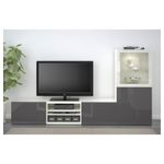 Шкаф для ТВ, комбинированный, стекляные дверцы БЕСТО, белый, Сельсвикен глянцевый/серый прозрачное стекло (240x40x128 см)