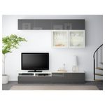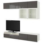 Шкаф для ТВ, комбинированный, стекляные дверцы БЕСТО, белый, Сельсвикен глянцевый/серый прозрачное стекло (240x40x230 см)
