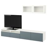 Шкаф для ТВ, комбинированный, стекляные дверцы БЕСТО, белый, Вальвикен серо-бирюзовый, прозрачное стекло (240x20/40x166 см)
