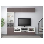 Шкаф для ТВ, комбинированный, стекляные дверцы БЕСТО, белый, Вальвикен темно-коричневый, прозрачное стекло (240x40x230 см)