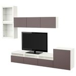 Шкаф для ТВ, комбинированный, стекляные дверцы БЕСТО, белый, Вальвикен темно-коричневый, прозрачное стекло (300x20/40x211 см)