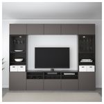 Шкаф для ТВ, комбинированный, стекляные дверцы БЕСТО, черно-коричневый Грундсвикен, темно-серый прозрачное стекло (300x40x230