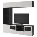 Шкаф для ТВ, комбинированный, стекляные дверцы БЕСТО, черно-коричневый, Лаппвикен светло-серый прозрачное стекло (240x40x230 см)