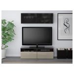 Шкаф для ТВ, комбинированный, стекляные дверцы БЕСТО, черно-коричневый, Сельсвикен глянцевый/бежевый/дымчатое стекло