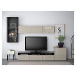 Шкаф для ТВ, комбинированный, стекляные дверцы БЕСТО, черно-коричневый, Сельсвикен глянцевый/бежевый прозрачное стекло