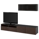 Шкаф для ТВ, комбинированный, стекляные дверцы БЕСТО, черно-коричневый, Сельсвикен глянцевый/коричневый дымчат стекло