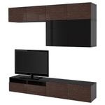 Шкаф для ТВ, комбинированный, стекляные дверцы БЕСТО, черно-коричневый, Сельсвикен глянцевый/коричневый дымчат стекло