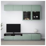 Шкаф для ТВ, комбинированный, стекляные дверцы БЕСТО, черно-коричневый Сельсвикен, глянцевый/серо-зеленый светлый прозрачное