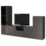 Шкаф для ТВ, комбинированный, стекляные дверцы БЕСТО, черно-коричневый, Сельсвикен глянцевый/серый дымчатое стекло (300x40x192