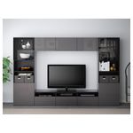 Шкаф для ТВ, комбинированный, стекляные дверцы БЕСТО, черно-коричневый, Сельсвикен глянцевый/серый прозрачное стекло (300x40x192