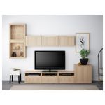 Шкаф для ТВ, комбинированный, стекляные дверцы БЕСТО, Ханвикен, Синдвик под беленый дуб, прозрачное стелко (300x20/40x211 см)
